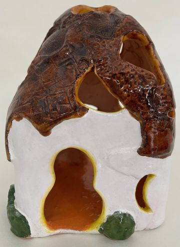 Openwork roof allows for a light inside. It would be great for a fish tank, but unfortunately cannot be used in this way due to clay porosity and leeching.