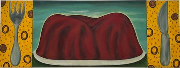 An outgrowth of the earlier Ayer's Rock Pudding, this painting contrasts the way Western and Aboriginal cultures view earth juxtaposing their approaches to land/scape.