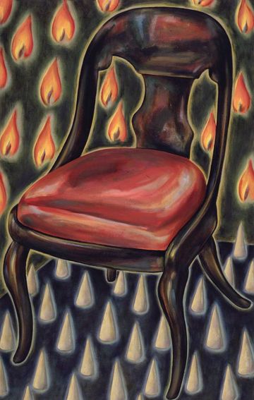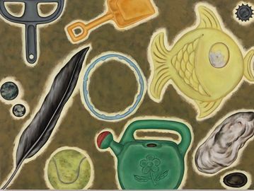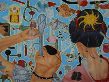 This painting explores various ways we talk about the Fifth or Throat chakra. You will find depictions of many idioms as well as personal images to do with the throat.